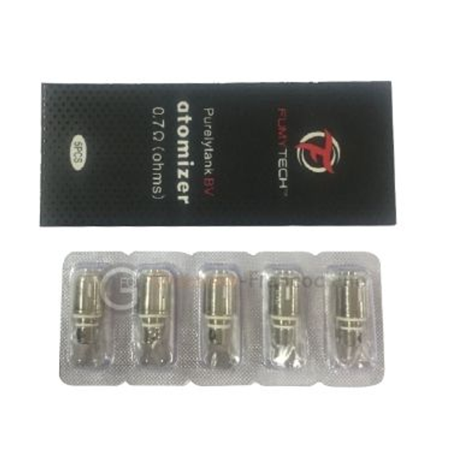 Pack de 5 Résistances de remplacement Purely Plus BVC 0.7ohm Fumytech (pur coton et fil Kanthal) pour clearomiseur Purtank 2, Purely Tank 1 et 2, Fumytridge A, Mini Pocket, E-Pocket